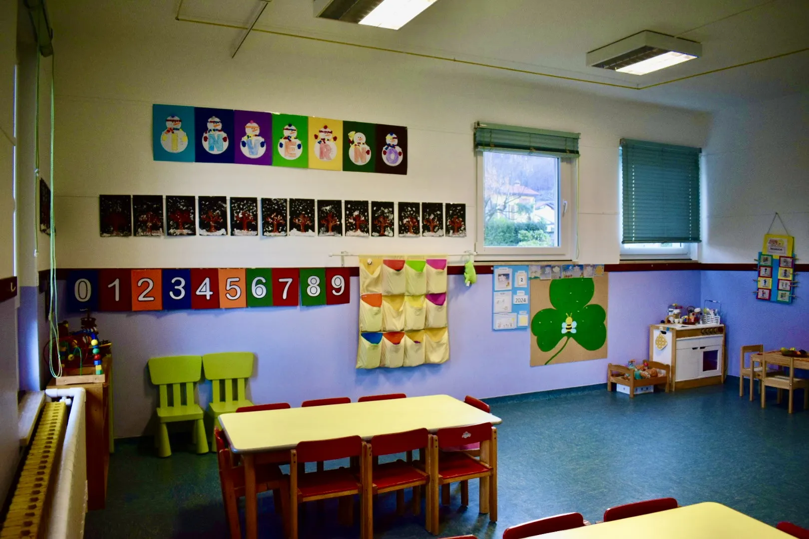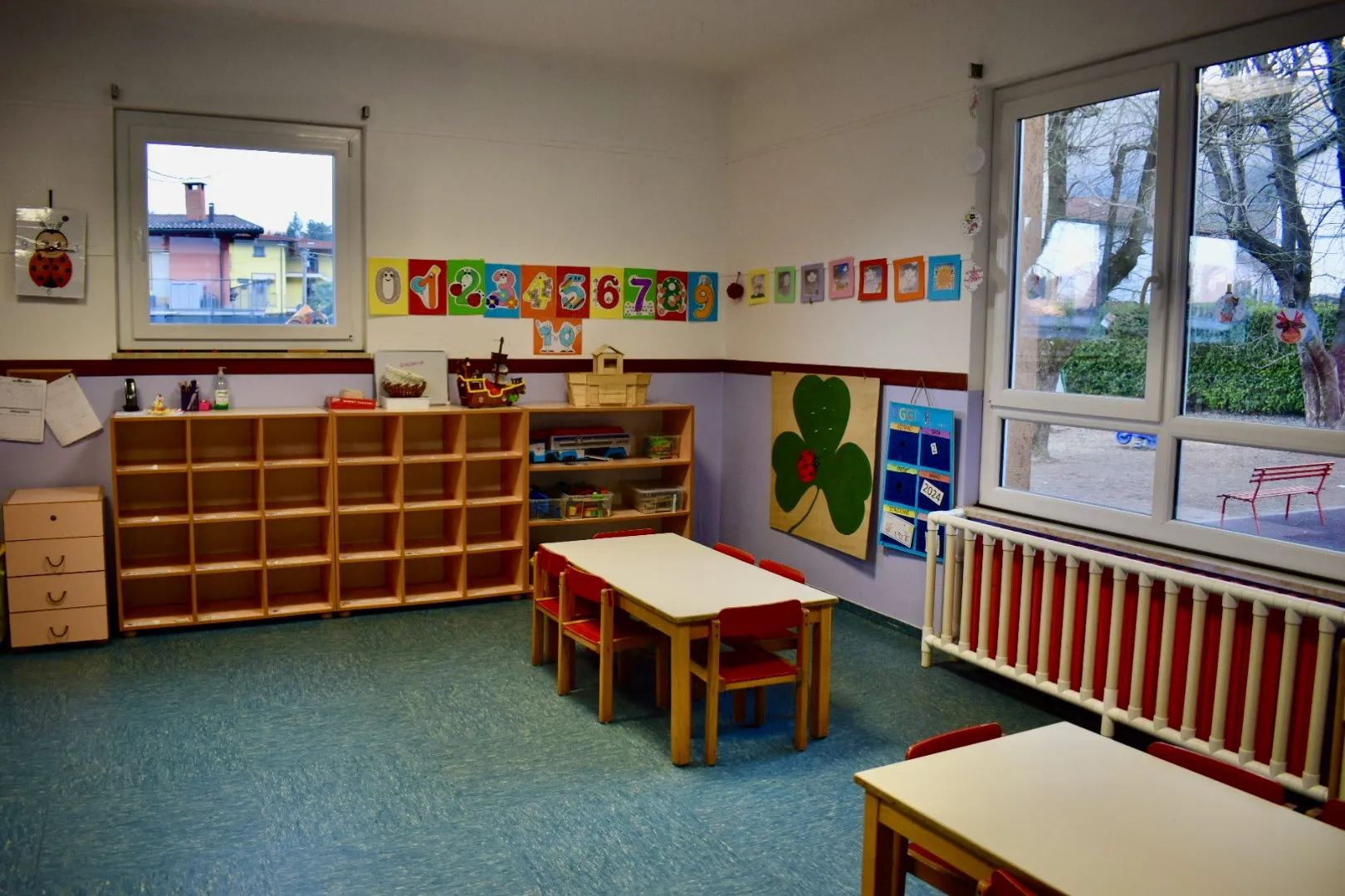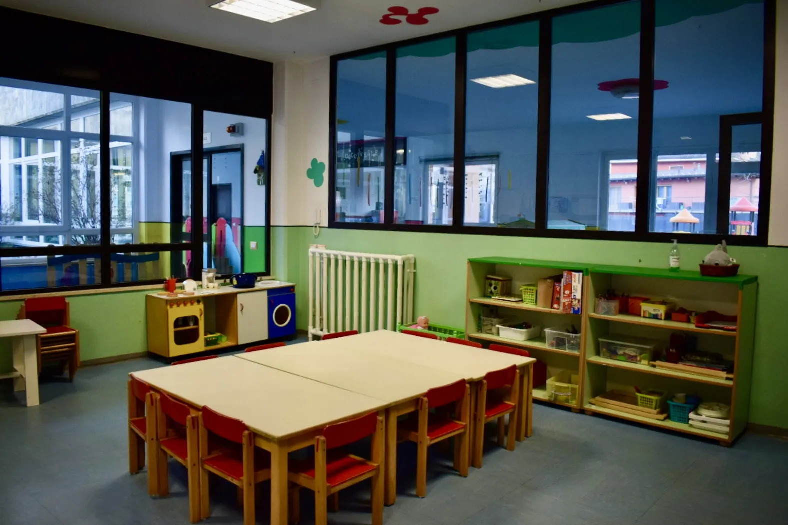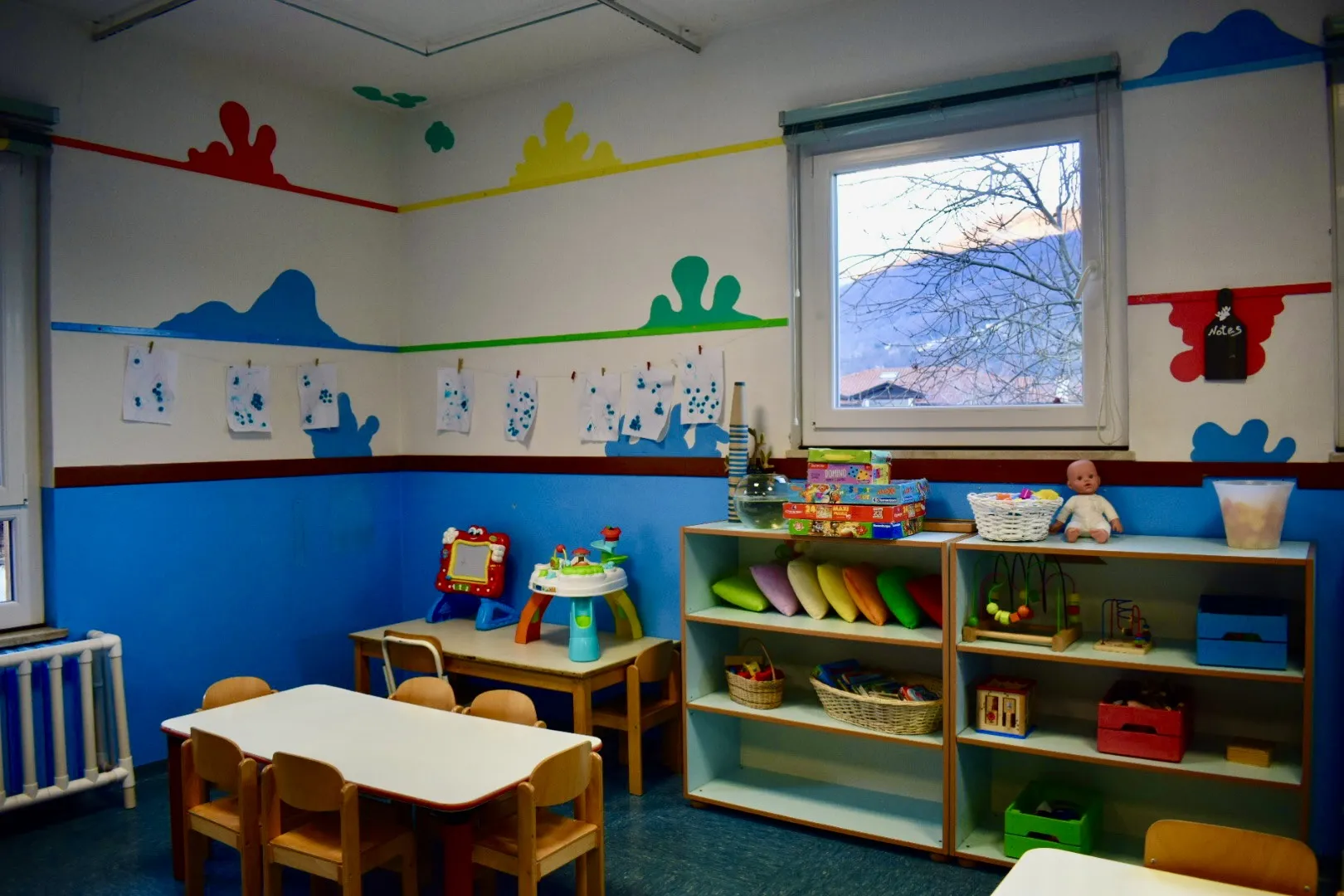 **Aule Didattiche**: Ogni aula è luminosa, colorata e dotata di materiali educativi, creando un ambiente ideale per l’apprendimento e la creatività.